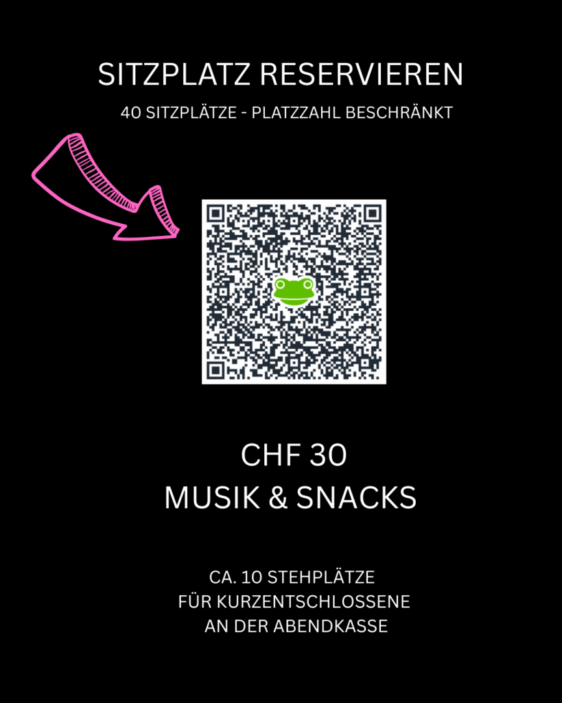 Damit wir optimal planen können, bitten wir um eine Anmeldung über Eventfrog. Sichern Sie sich rechtzeitig Ihre Plätze und erleben Sie einen besonderen Feierabend inmitten anderer Kulturbegeisterter! Im Eintrittspreis von CHF 30 sind Sitzplatz, Musik und Snacks bereits enthalten.